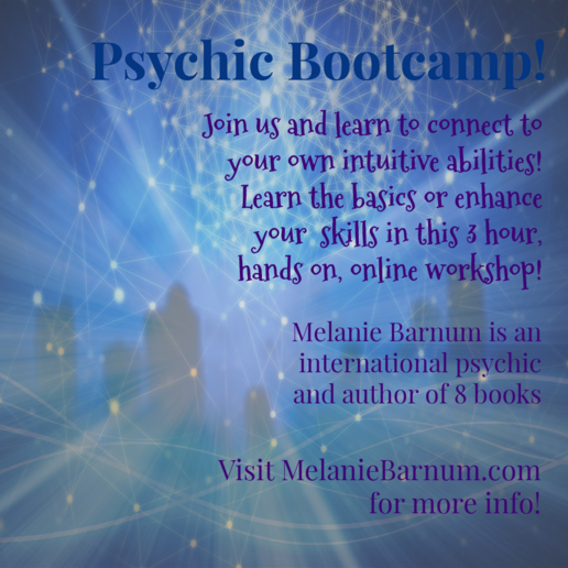 Take advantage of this special offer to learn from international psychic and author, Melanie Barnum for one low price, either on-line or in person!
